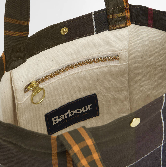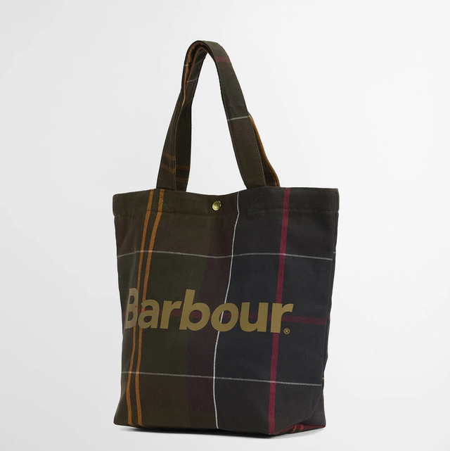 The Barbour Mini Telfield Tartan Tote is crafted from cotton in a signature tartan design. Featuring a branded stud closure, internal slip pocket, and a large printed logo on the front panel, it combines practical everyday functionality with heritage-inspired style, making it a compact and stylish choice for daily use.