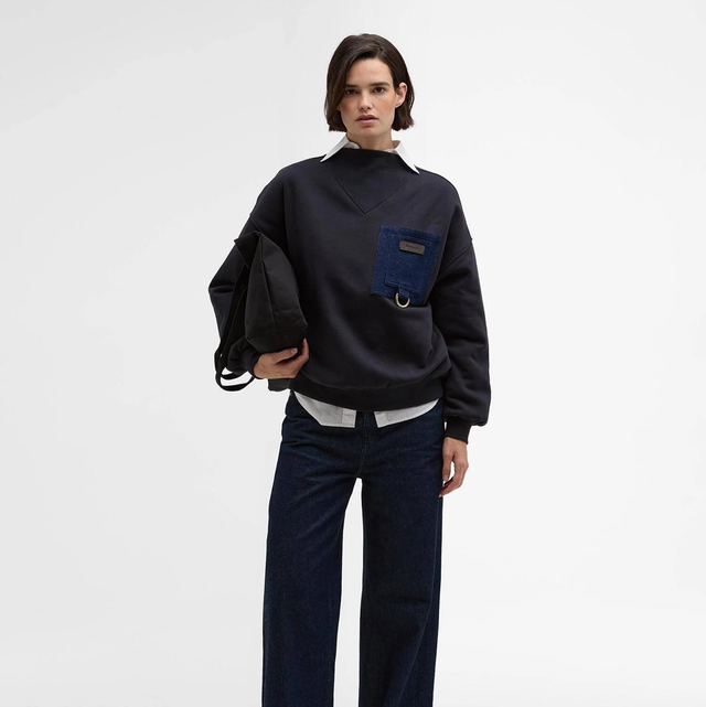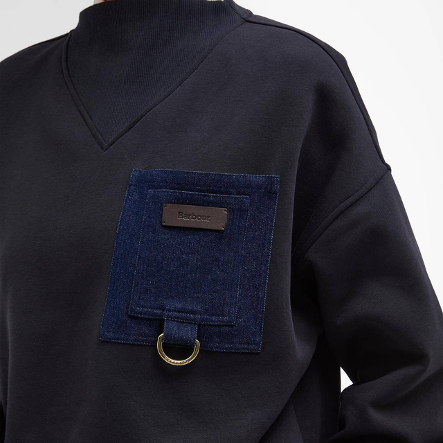 The Barbour Saima Sweatshirt offers a relaxed fit for all-day comfort. Its ribbed funnel neck adds a touch of sophistication, while the double pocket detail with a Barbour-branded D-ring and de-bossed PU patch brings functional charm. Perfect for layering on cooler days