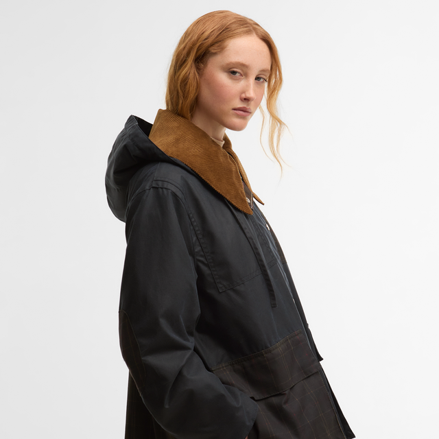 Barbour X Ganni Hooded Duffle Wax Navy Classic Tartan