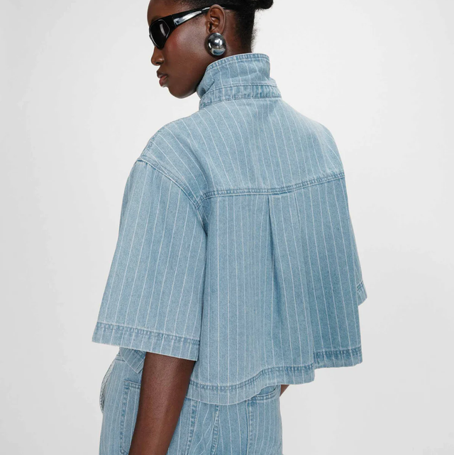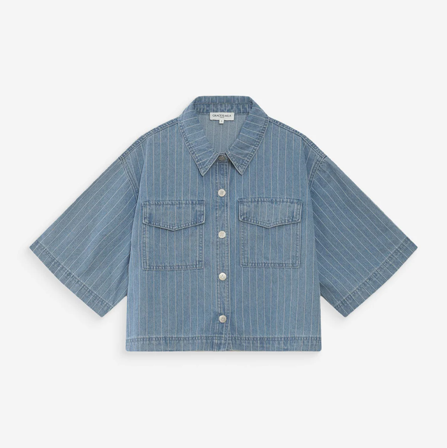 Cropped Denim Striped Shirt