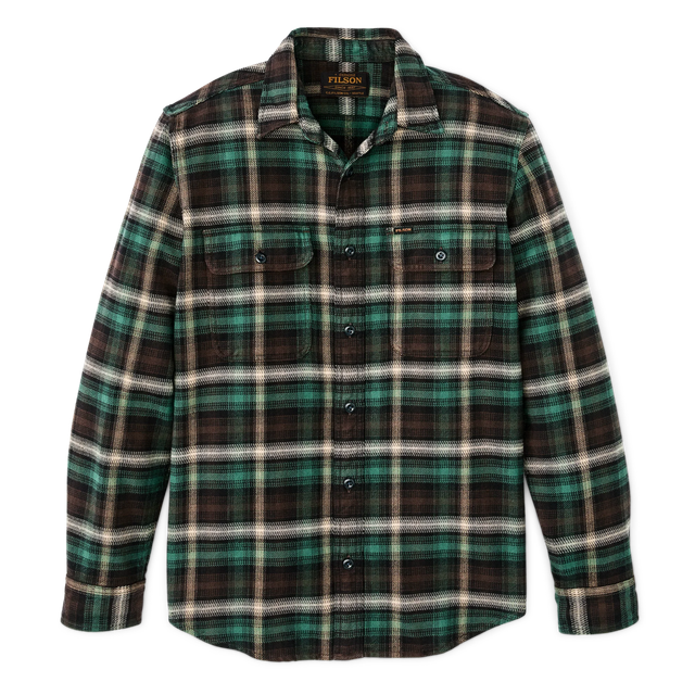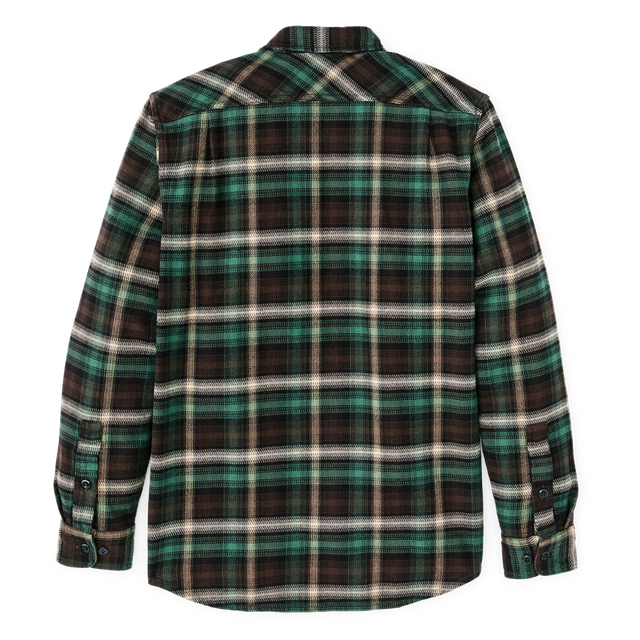 Our Vintage Flannel Work Shirt has been a favorite of Filson employees and customers alike since its 2015 introduction. Built with thick and breathable cotton flannel, it's ideal for cold weather. The fabric is heavily brushed for outstanding softness and thermal retention. Dual shoulder pleats on the back yoke provide unrestricted range of motion for working overhead, casting a fly rod, or shouldering a shotgun. Virtually unbreakable buttons are used for the front closure and adjustable cuffs to ensure long-term durable service.