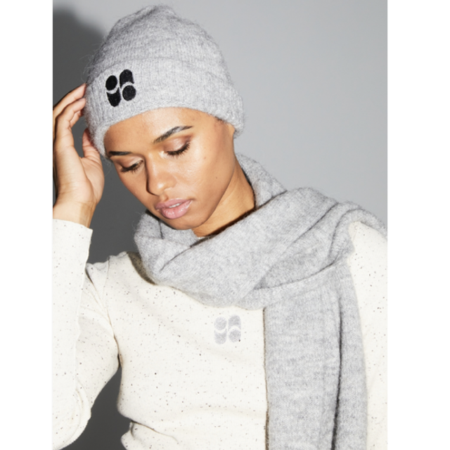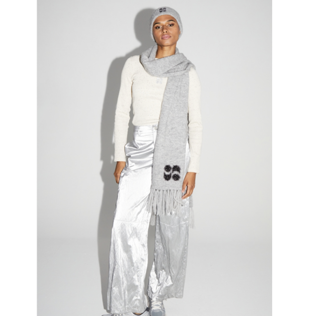 - Geborduurd huislogo in contrasterende lurex op de voorkant, een discrete schittering, een kostbare handtekening