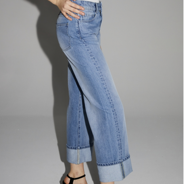 - Rechte denim met lange pijpen en revers