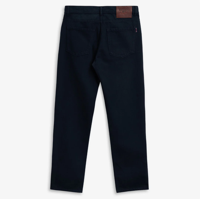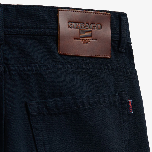 These practical 5-pockets straight-leg pants take direct inspiration from classic durable workwear. Their full-bodied cotton gabardine gets softer and more and more pleasant to the touch through wearing and washing. They feature front opening with zip and metal buttons stamped with personalised Sebago logo, reinforced chain stitching, contrast stitching with thick yarn, personalised metal rivets, leather patch on the top right handside in the back and personalised Sebago flag. A true passe-partout to step easily from sailing boat to deck with the right amount of class and casual.