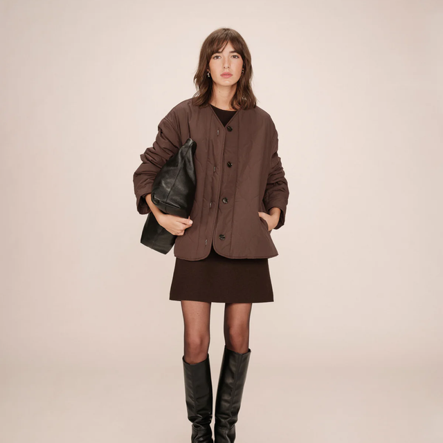 Style it with: the SHANIA quilted down jacket is worn with the STAY wide-leg pants and the SAGAN wool sweater or with the SARAH tailored dress . Two contemporary and warm looks that offer a feminine and modern style.