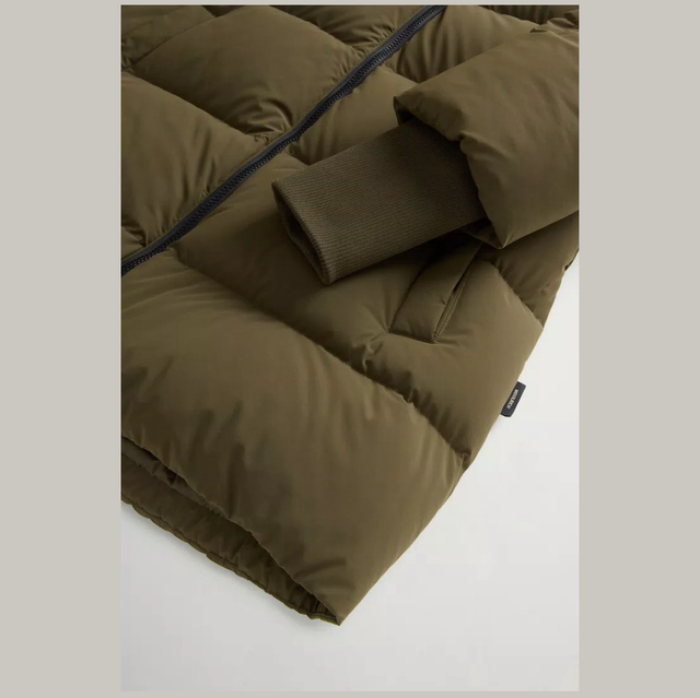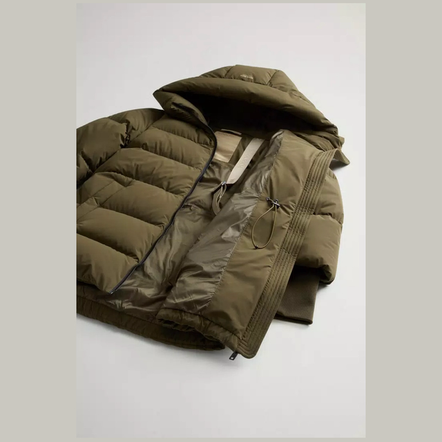 Dit donsjack, ontworpen voor de koude winterdagen, is afkomstig uit de Cloud Series, onze warme maar ultralichte capsule-bovenkledingcollectie. Gemaakt van elastisch nylon en verrijkt met een matte afwerking, water- en windbestendig en gevuld met zachte eendendons zodat je tijdens momenten buitenshuis altijd warm blijft. Het model heeft een capuchon voor extra bescherming, een tweewegrits, een interne tailletrekkoord en bretels zodat je hem gemakkelijk op je schouders kunt dragen als je in gesloten ruimten bent. De paspelzakken aan de zijkanten bieden gemak, terwijl de geribbelde manchetten en het zijlabel het ontwerp afmaken.